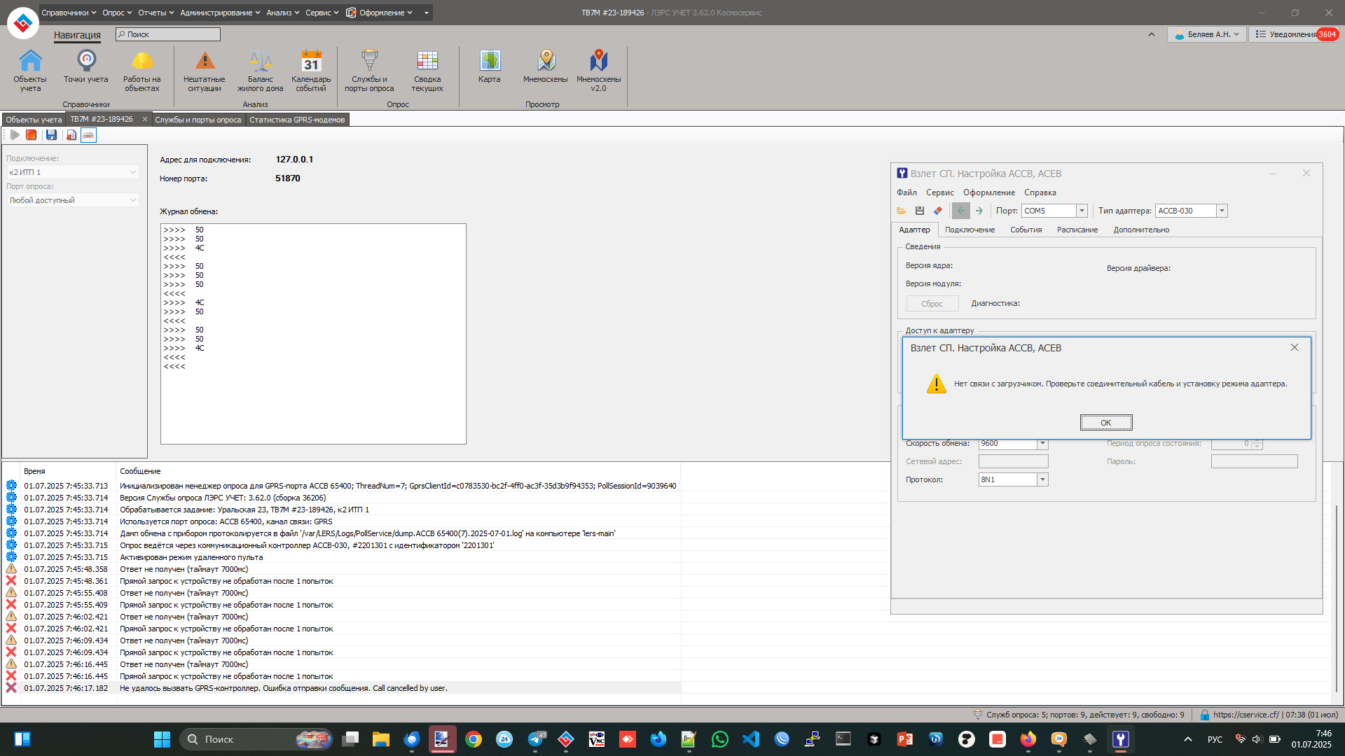 Честно сказать плохо ориентируюсь в ПО Взлет СП. Как правило опрос в нем производил только по IP-адресу и порту Подскажите, пожалуйста, как именно вы принимали в нем подключение нужного АССВ-030 и запускали конкретно для него утилиту настройки АССВ-030? Вижу только ее запуск из меню Сервис, но там, на сколько я понял, она просто запускается.
