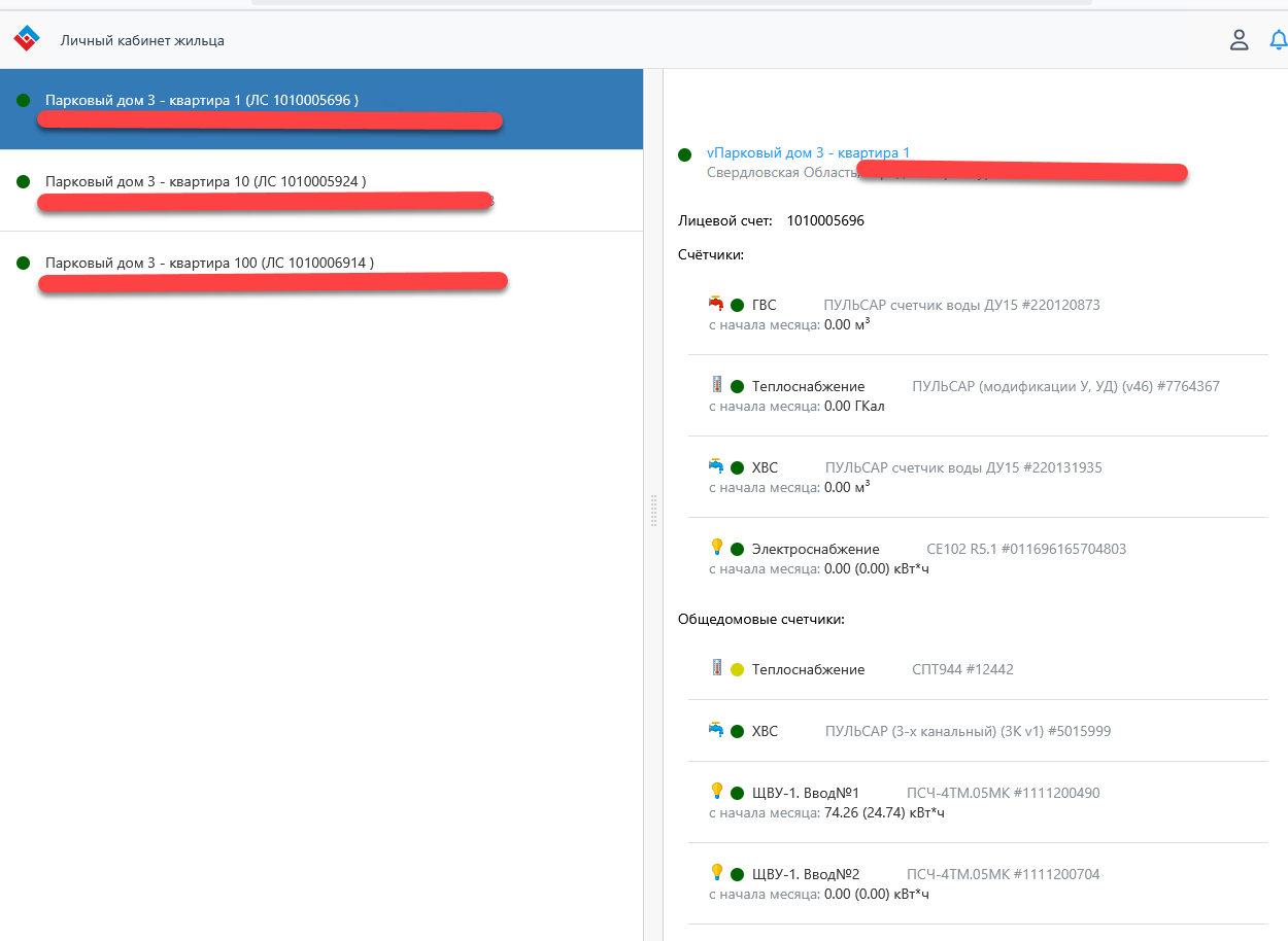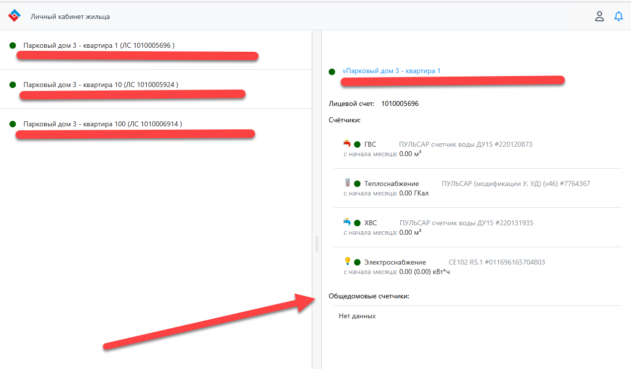 - Если у жильца нет доступа к просмотру общедомовых счётчиков, то не показывать строку “Общедомовые счётчики”. Она вызывает ненужные вопросы.