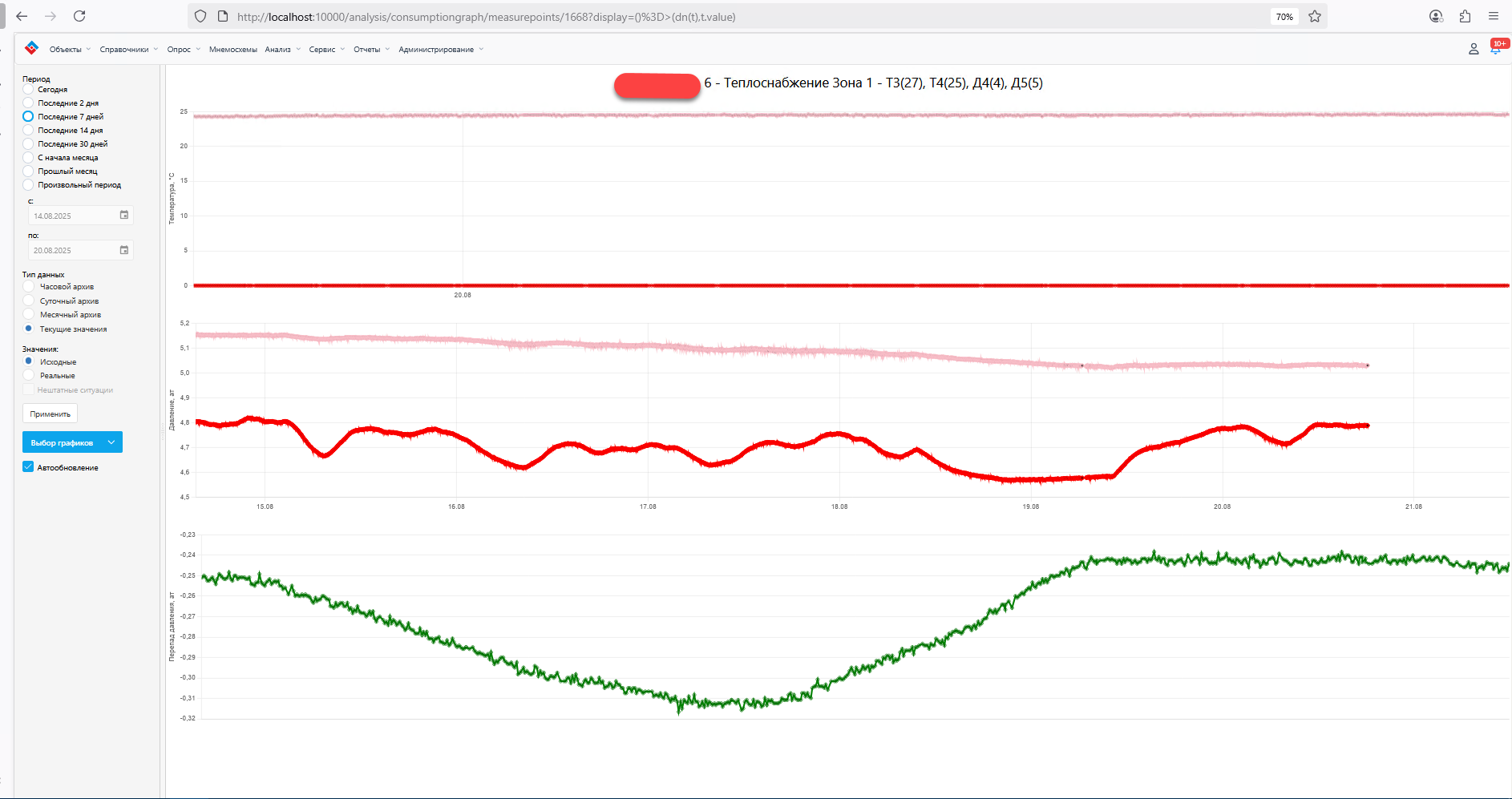 У графика с данными заложен функционал, что он должен сам изменять отображаемый формат при изменении запрашиваемых типов данных и уровня приближения. Однако в данный момент при изменении запрашиваемых типов данных формат отображения не изменяется. После открытия графика можете попробовать обновить страницу и формат должен изменится.