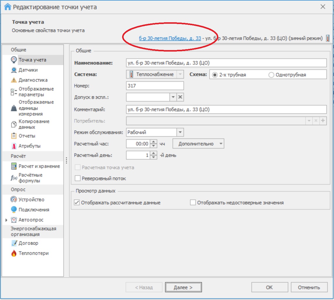 Перестала работать ссылка на объект учета в окне редактирования точки учета.