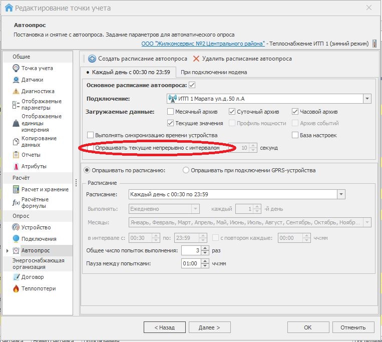 Здравствуйте. В разделе очередь опроса есть информация из настроек автоопроса - колонка с перечнем загружаемых данных и колонка с Коррекцией времени. Прошу рассмотреть возможность добавить ещё колонку с информацией о непрерывном чтении текущих значений. Это упростит контроль за расходом средств, можно будет увидеть в каких ещё запланированных сеансах кто-либо из сотрудников установил чтение текущих, а не только когда эти сеансы уже были завершены