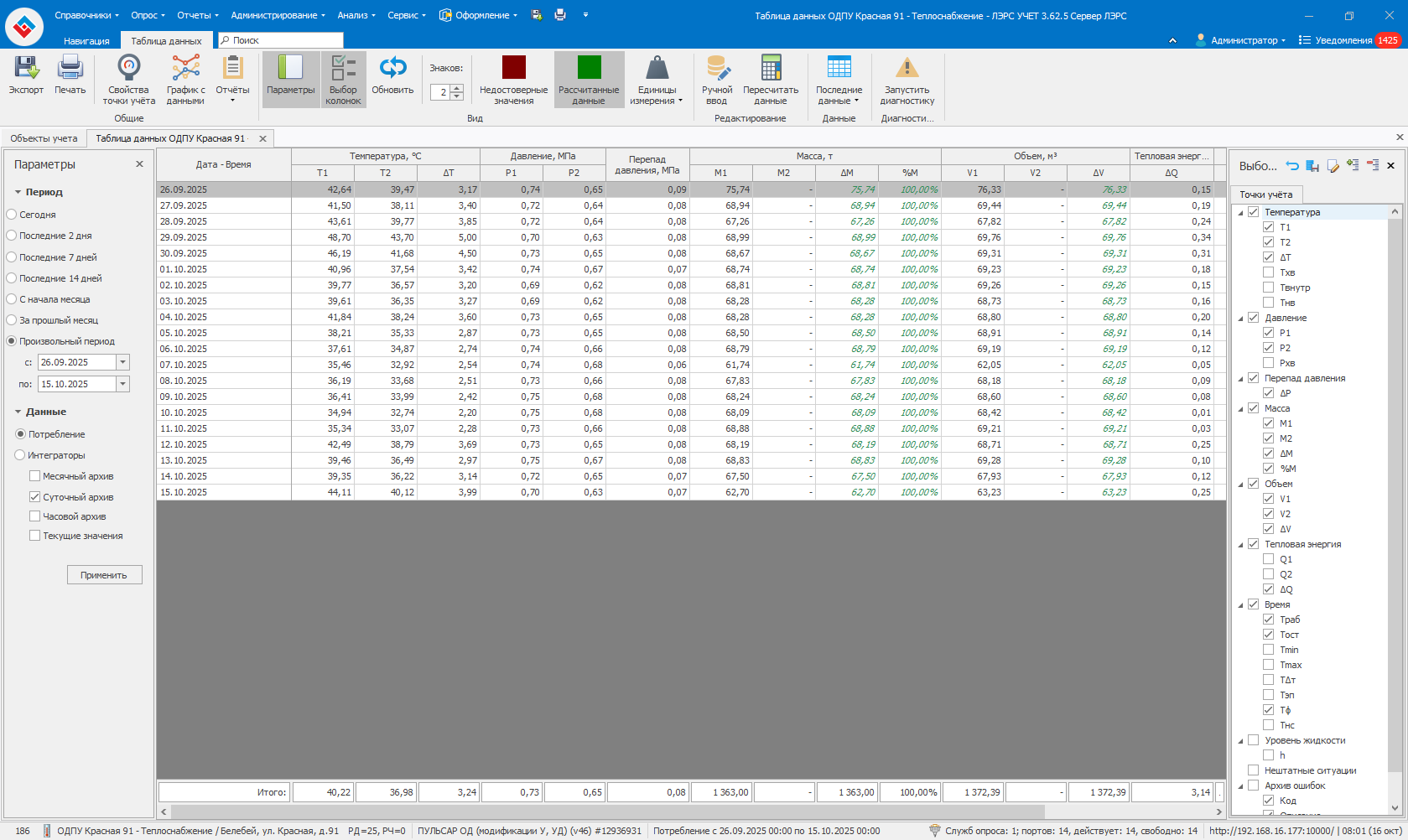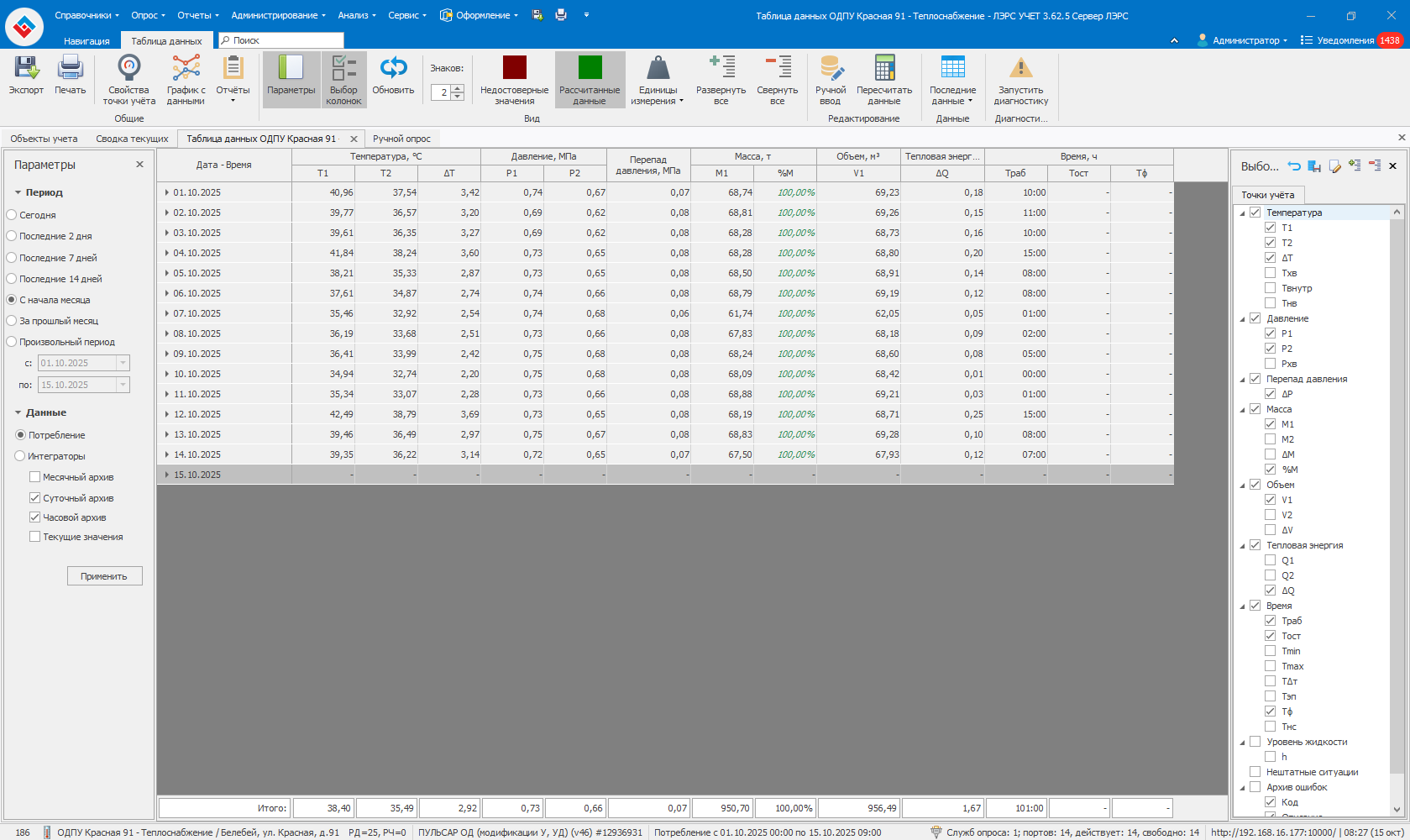 Перезапускать сервер не нужно. Теперь при расчёте небаланса система проверит, указан ли только один расходомер в двухтрубной точке. Если это так, небаланс не рассчитывается.
