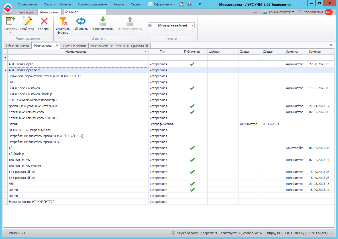 В списке доступных мнемосхем показывае все!!! мнемосхемы, даже те, которые не являются публичными, и запрещены для данной учётной записи.