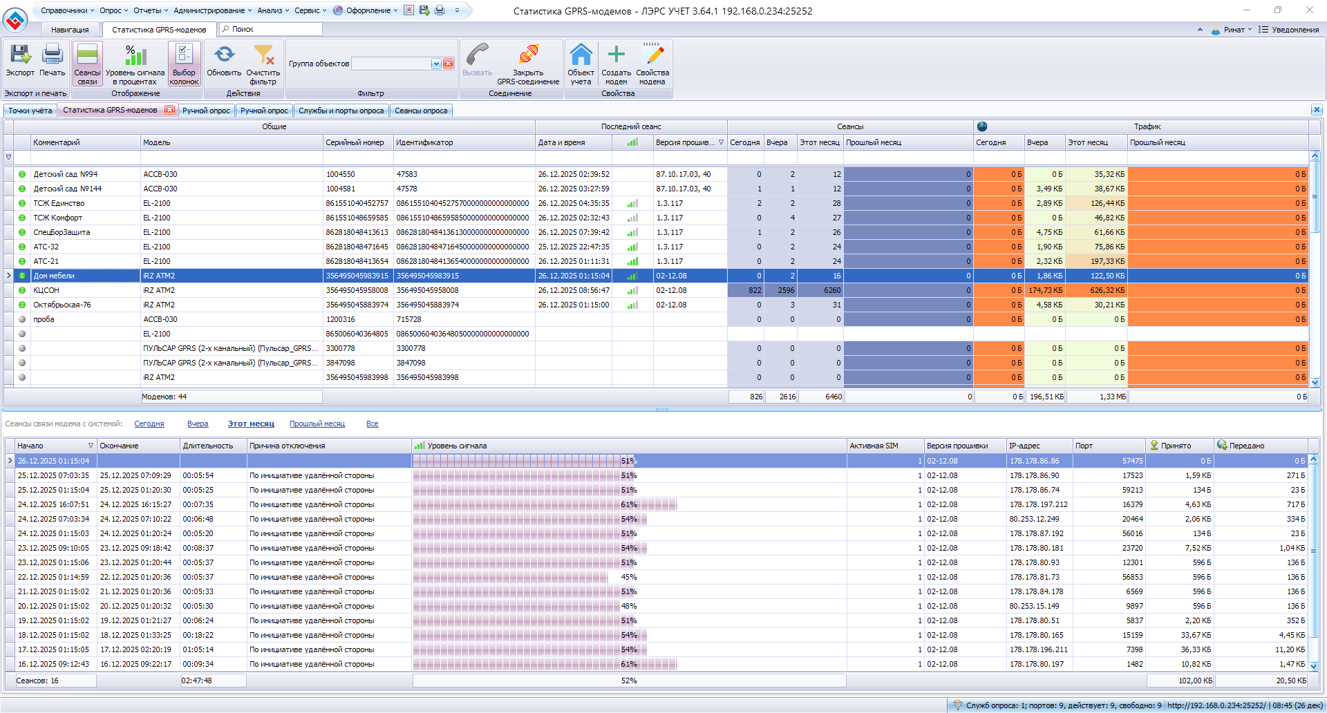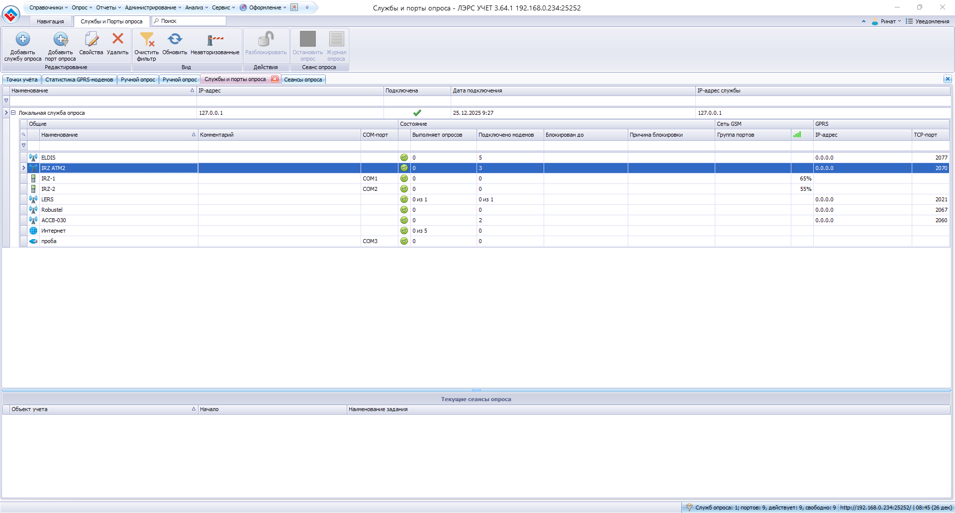 По ручному и автоопросу только с модемами iRZ ATM2-232.