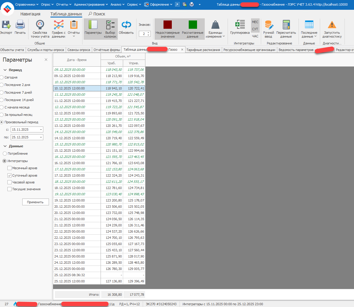 Обнаружил проблему при использовании интеграторов по газу в ситуации, когда расчётный час не равен нулю (UseReportingHour = «да»). В отчёте «Ведомость параметров по объекту» некорректно подставляются значения интеграторов начала и конца отчётного периода.