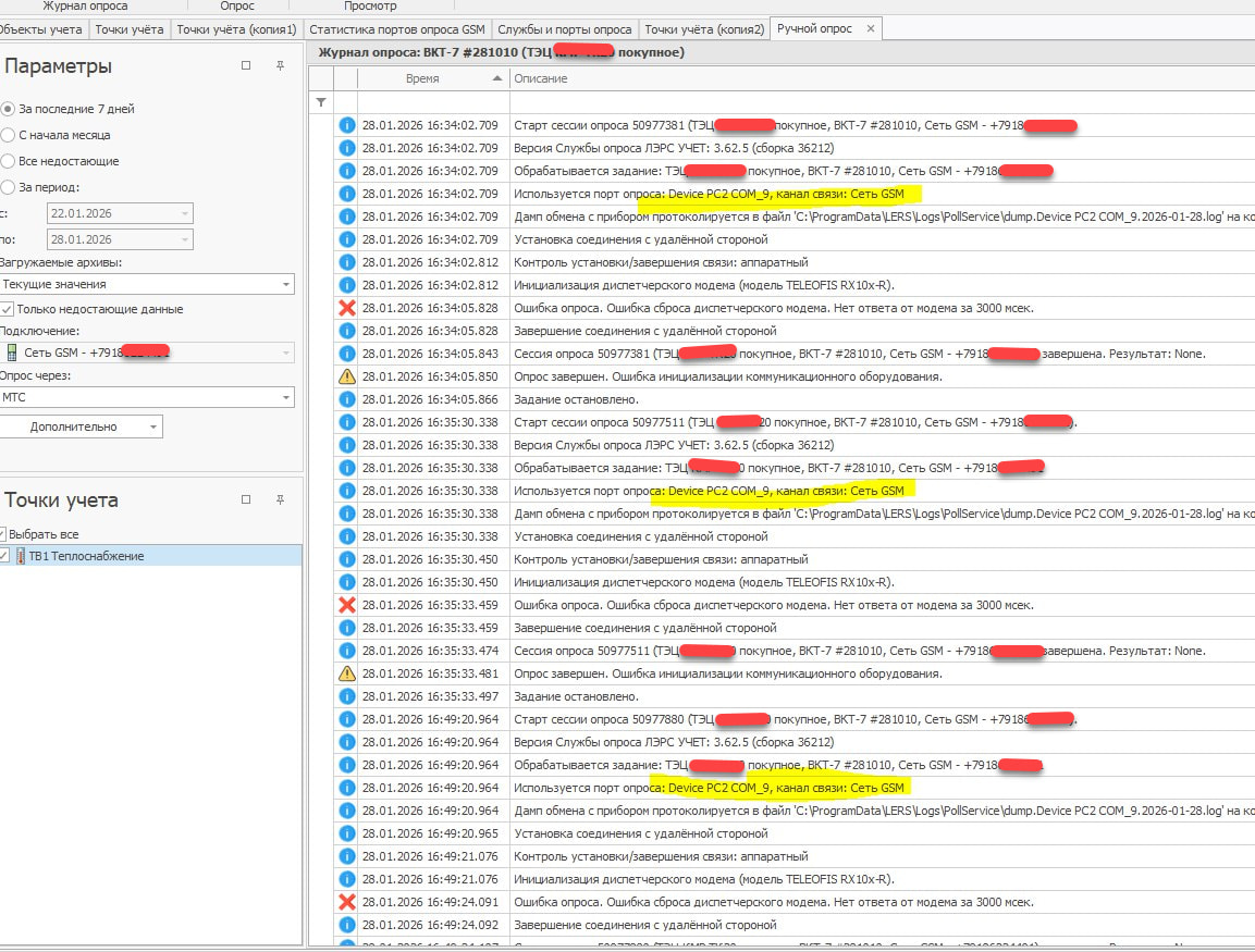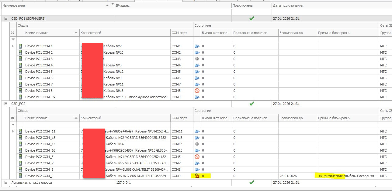 При блокировке модема ЛЭРСом из‑за критических ошибок он больше не используется в автоопросе. Однако при ручном опросе его блокировка не учитывается.