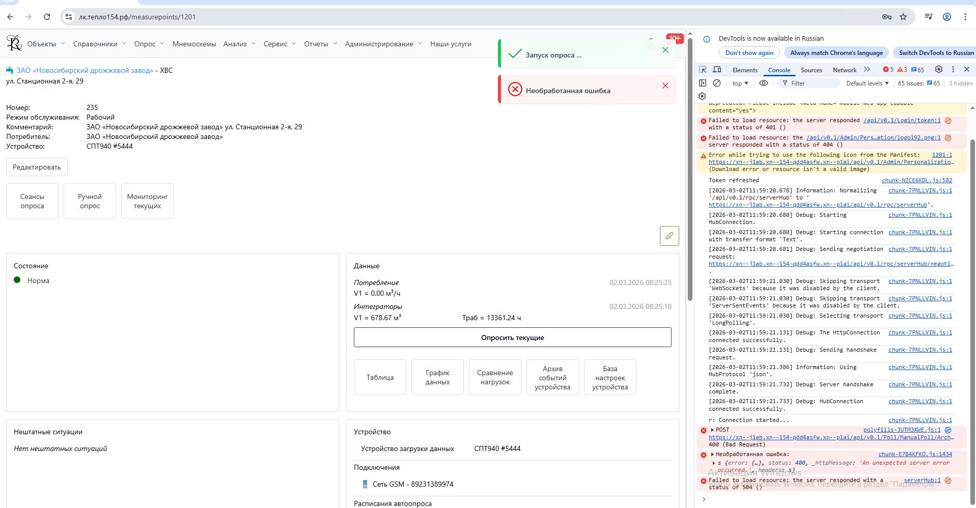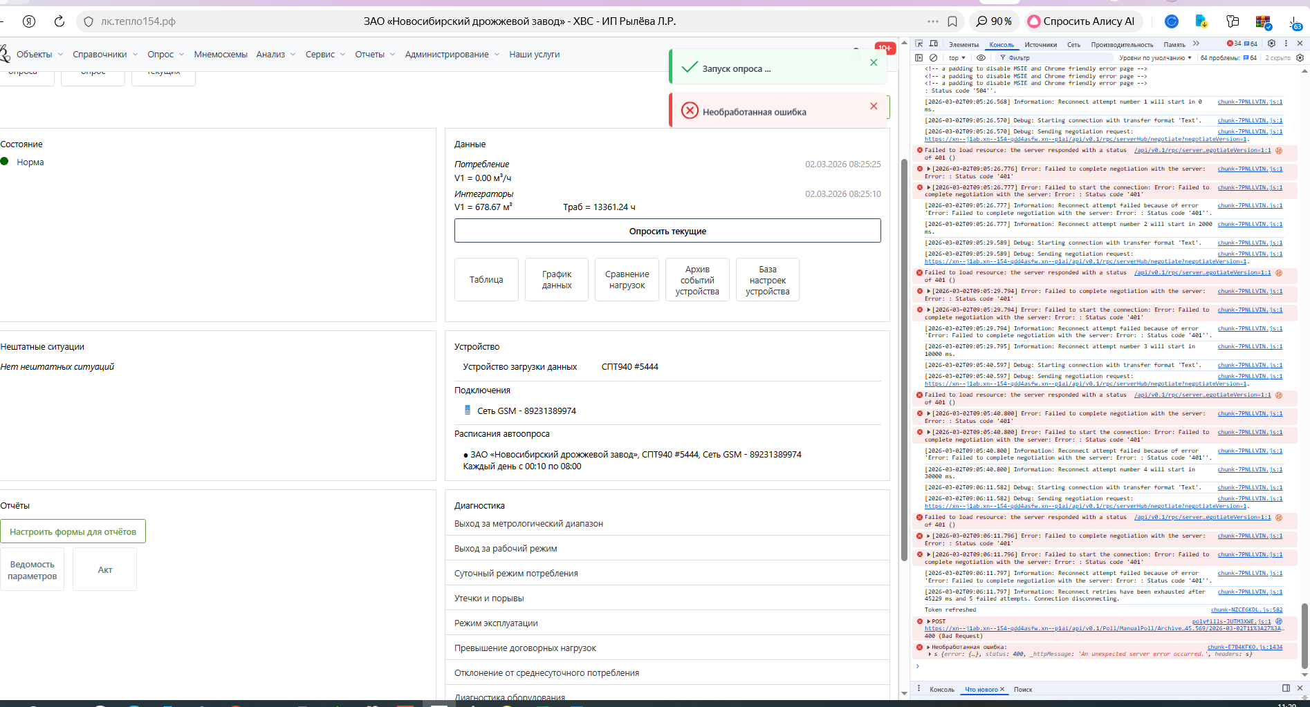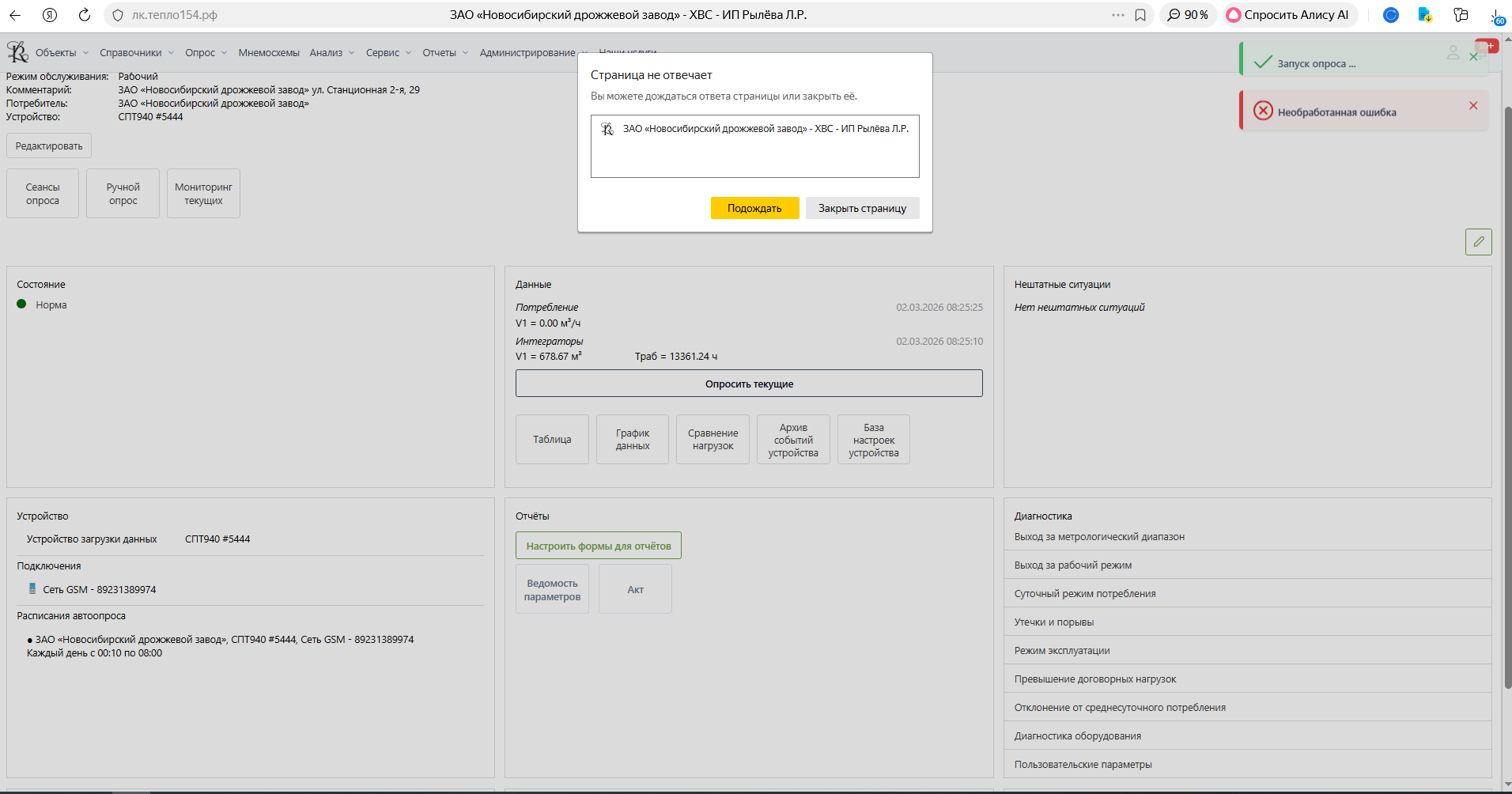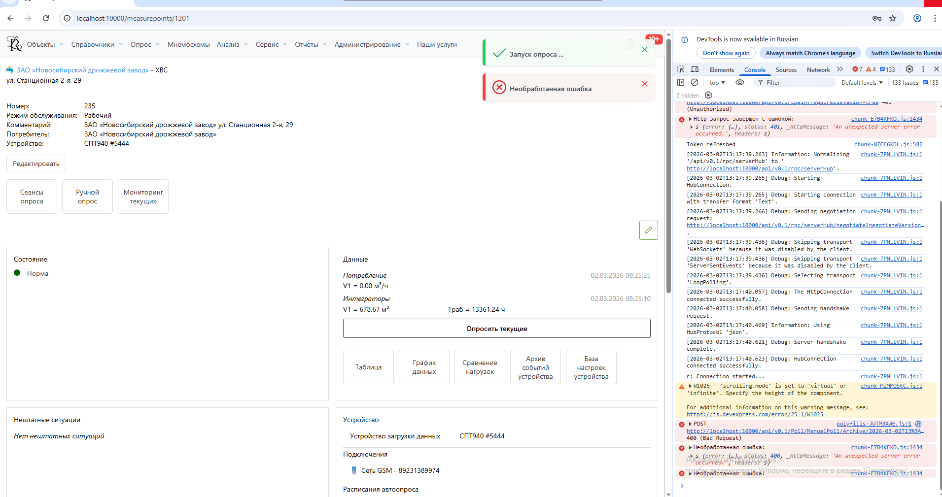 Возникла проблема при опросе «Опросить текущие» в веб-интерфейсе.