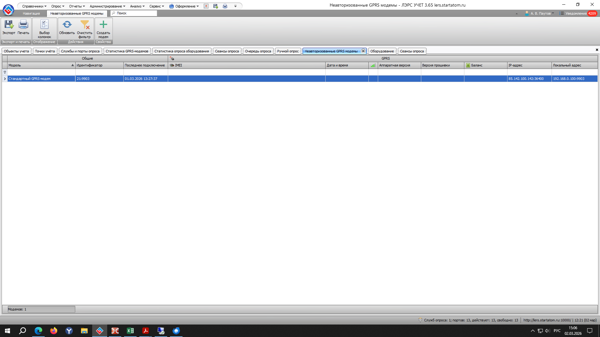 Во вкладке “Неавторизованные GPRS-модемы” он не пропал.