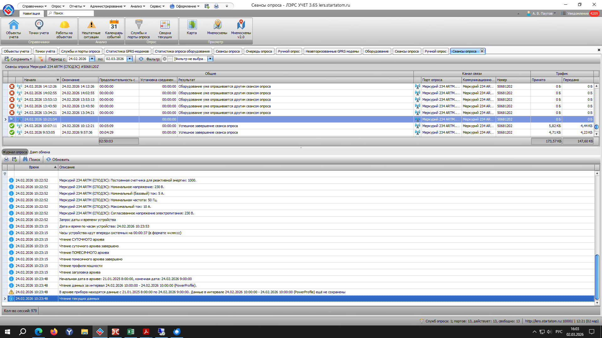 Похоже, что из-за какого-то сбоя остался запущенным сеанс опроса, у которого уже остановлено задание. Проверим и добавим обработку таких случаев в следующей версии 3.66.
