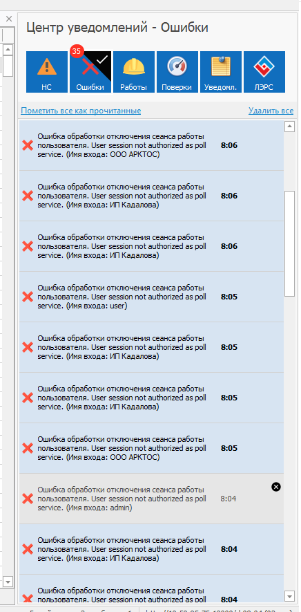 Ошибки возникают регулярно (каждую минуту), по разным пользователям/организациям.