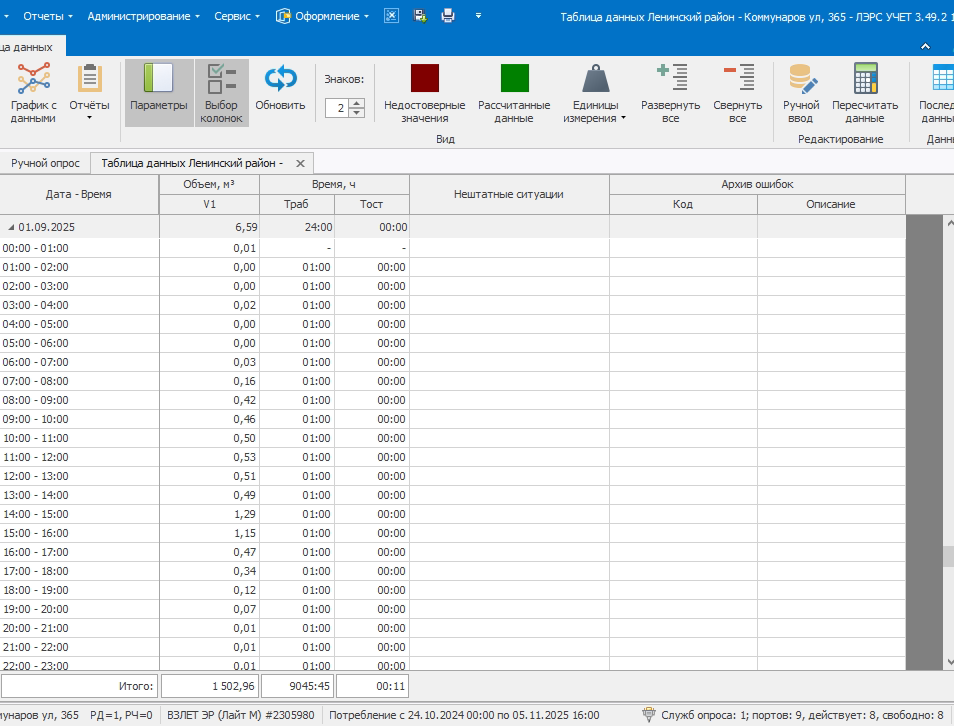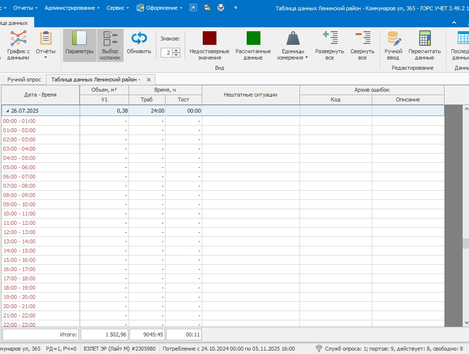 Здравствуйте. Подскажите, пожалуйста, по какому принципу считается часовой и суточный рахивы в ЛЭРС. Почему открывая суточный архив, я вижу что прибор проработал 24 часа, а открыв часовой, прибор вообще без архивных данных.