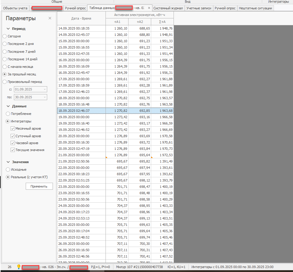 Пожалуйста, экспортируйте все данные по одной из точек учета, рассмотренных вами, за период, включающий метки времени наблюдаемого сброса.