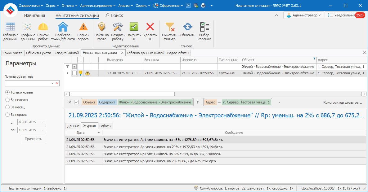 Диагностику настроил сегодня, после чего перезапустил её с 01.09. Подождал полдня — нештатные ситуации (НС) не появились.