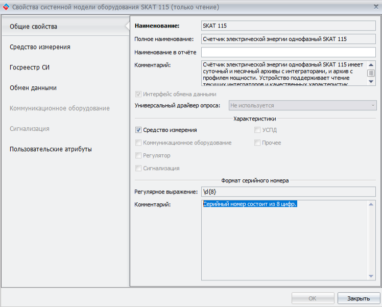 Мне удалось считать данные с прибора. Значения, которые хранятся в объктах вашего устройства, не соответствуют значениям, которые там должны быть. Например, вместо модели устройства “SKAT115” прибор присылате значение “EKF0000000000000”. На запрос сериного номера устройство присылает значение “EKF0131230018764”.