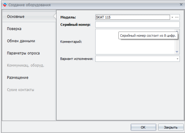 При создании оборудования позволяется ввести номер из 8 цифр.