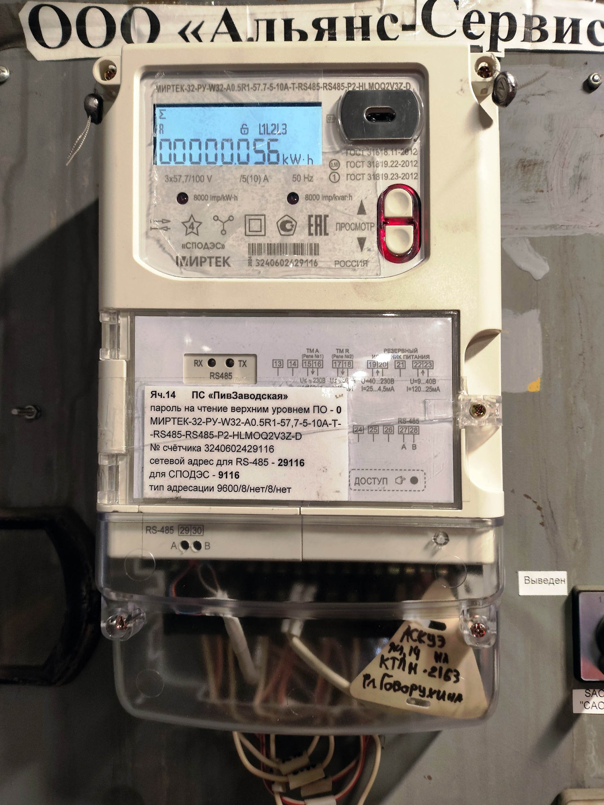 зав.№ 3240602429116, сетевой адрес 29116, пароль на чтение 0