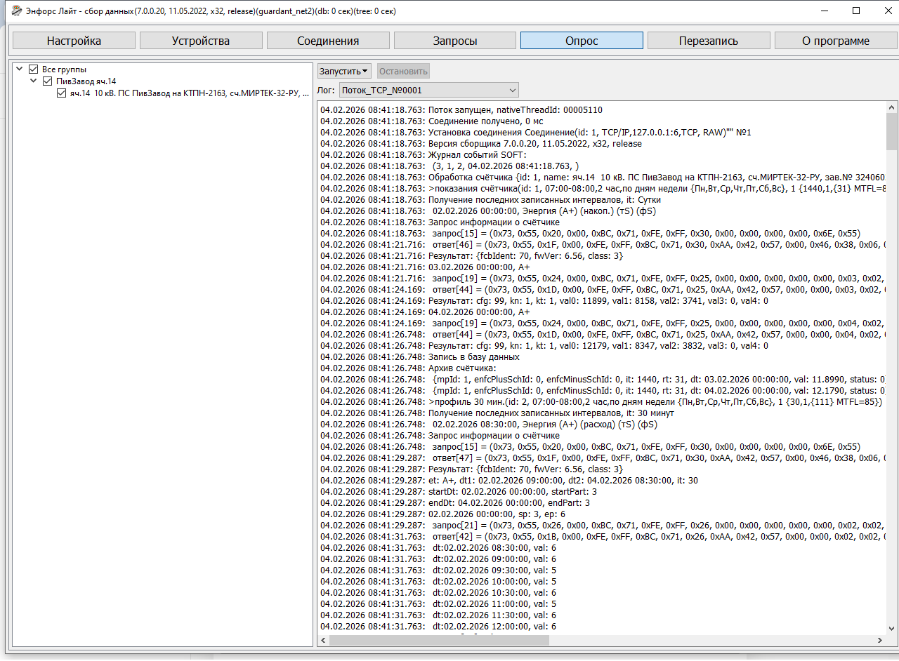 прошу посмотреть лог опроса счётчика вновь добавленного счётчика МИРТЕК-32-РУ