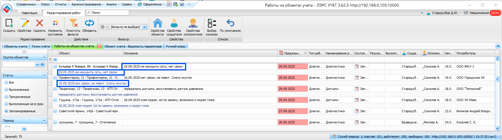С какой целью описание работы дублируется второй строкой в списке работ на объектах учета?
