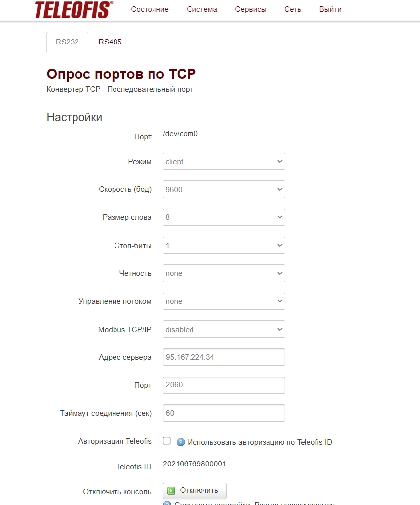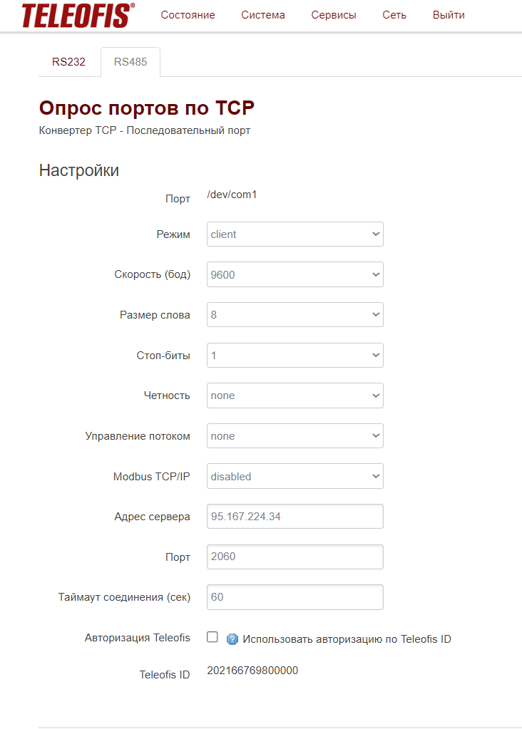 Описание протокола обмена с устройством: https://teleofis.ru/upload/iblock/d2c/Nastroyka-routerov-RTU-dlya-raboty-s-serverom-M2M24_Cloud-r.1.2-_2020_12_14_.pdf