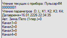 @L33t33 не могли бы вы сообщить, как вы считываете архивные данные с устройства. При чтении архивов программой TestAll устройство для всех каналов возвращает ошибку “Ошибка конфигурирования”.