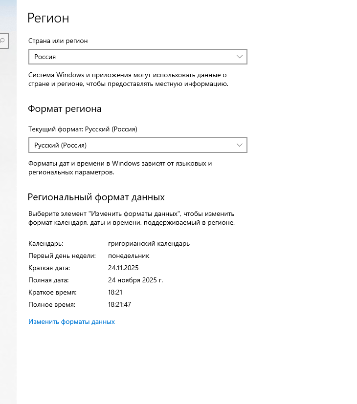 Настройки формта даты