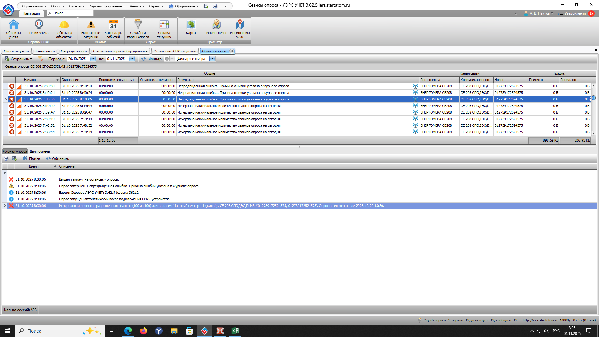 Уточните с какого момента начала возникать описываемая ситуация. Найдите самый первый журнал опроса, где начала возникать данная ошибка.