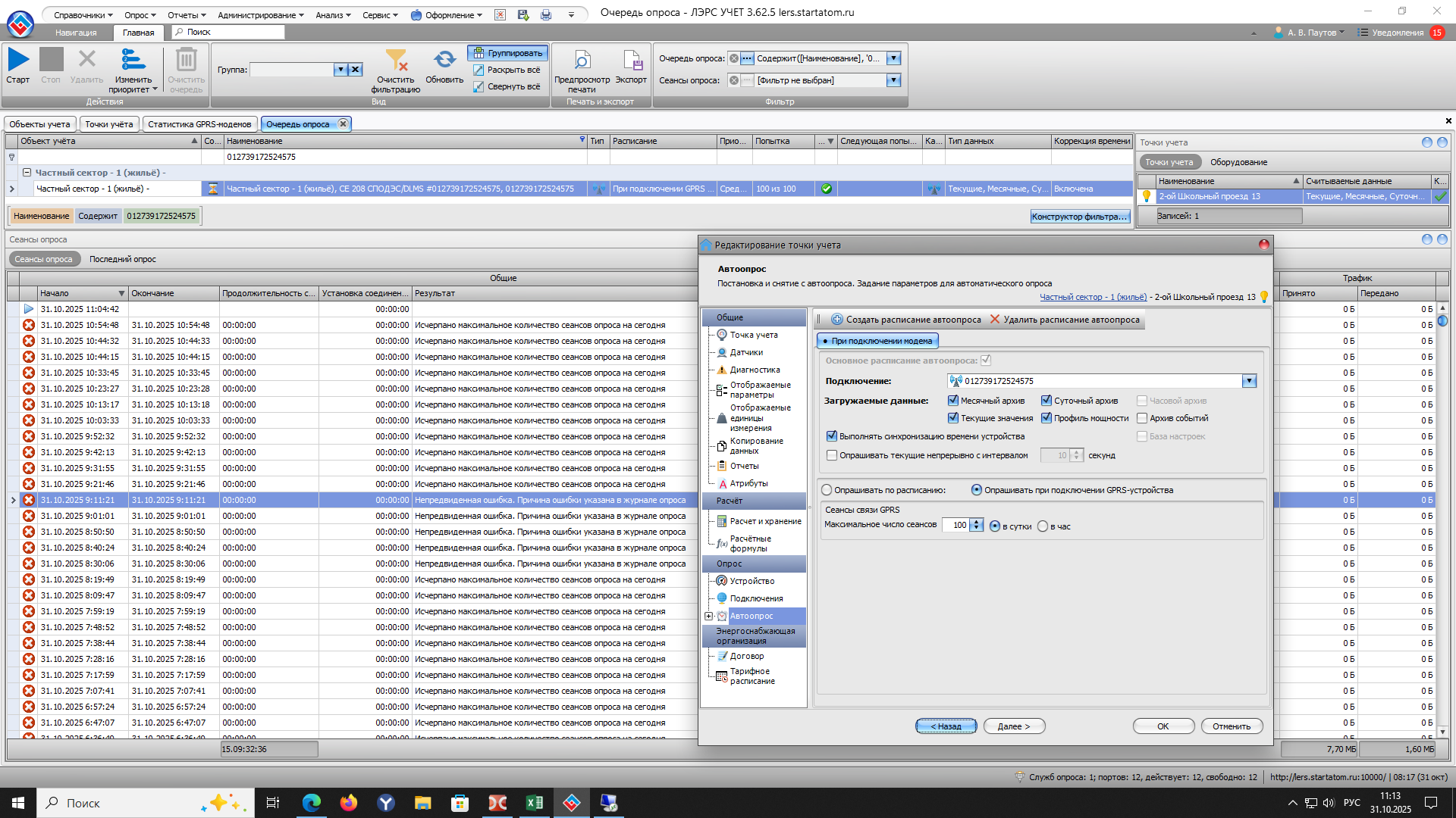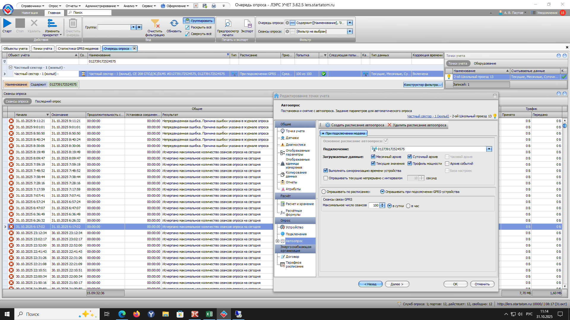 У всех точек учета приборы одной и той же модели? На компьютере Сервера такое же время, как и на клиенте?