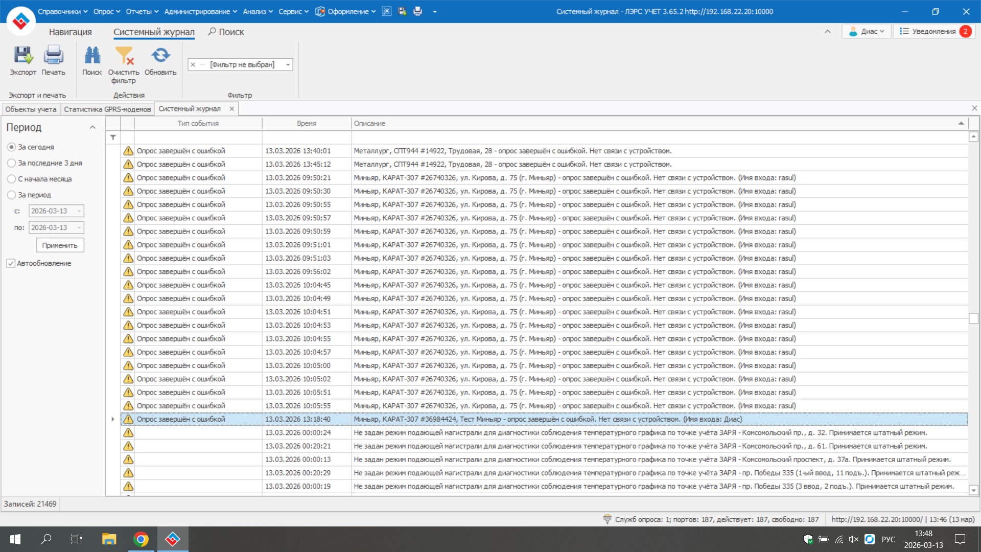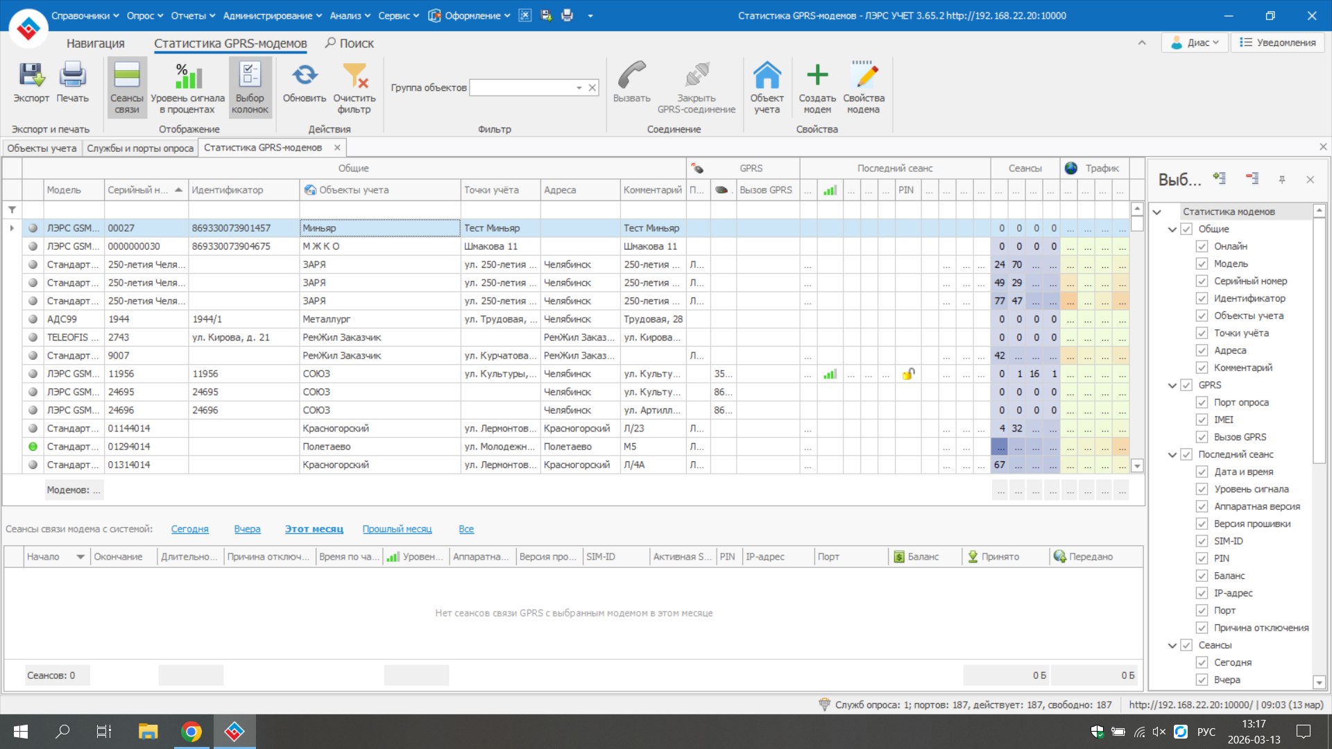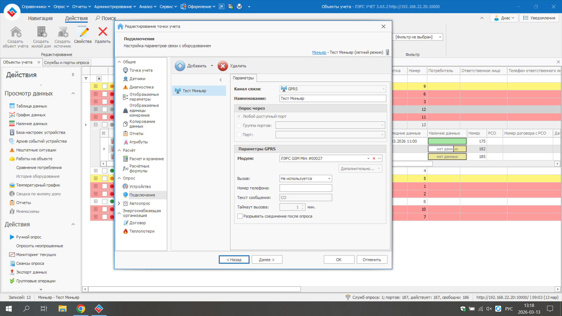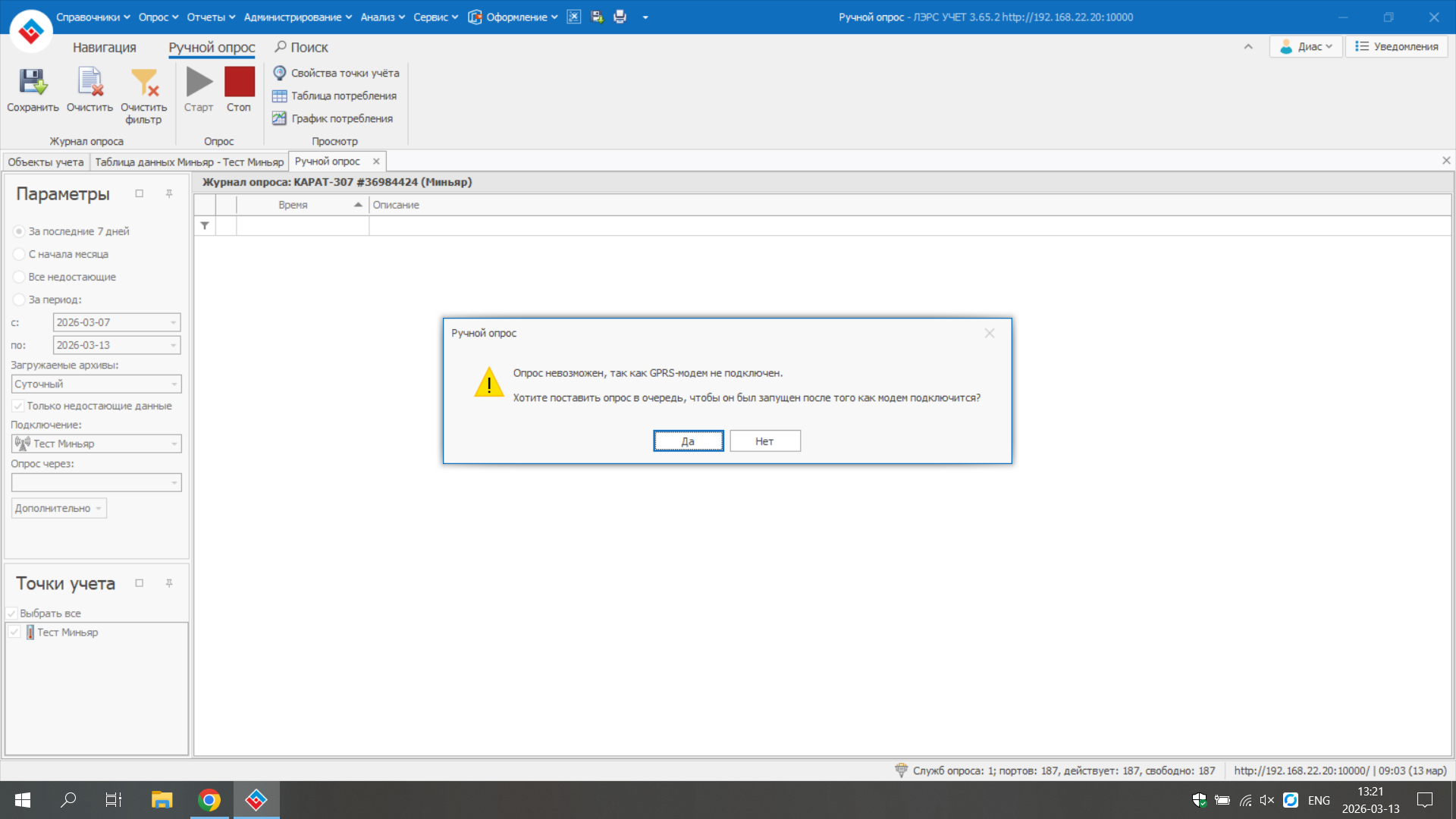 у меня возникают проблемы при опросе: Опрос невозможен так как GPRS модем не подключен,