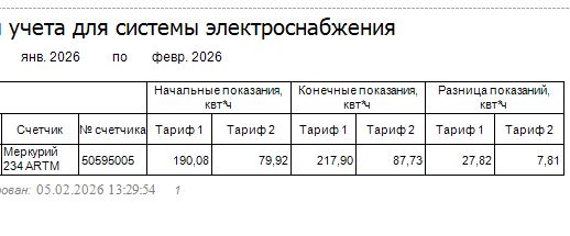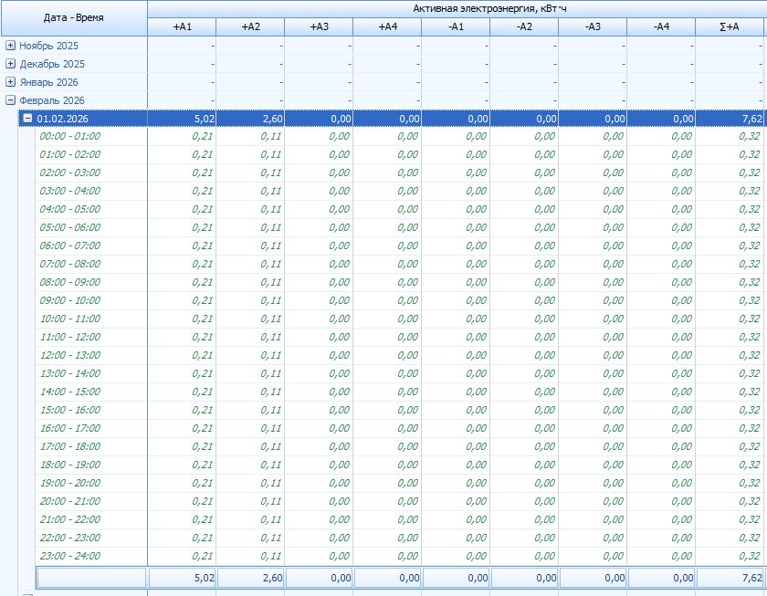 Приложите сформированный отчет и скриншот таблицы с месячными данными точки учета, по которой формировался этот отчет, за период его формирования.