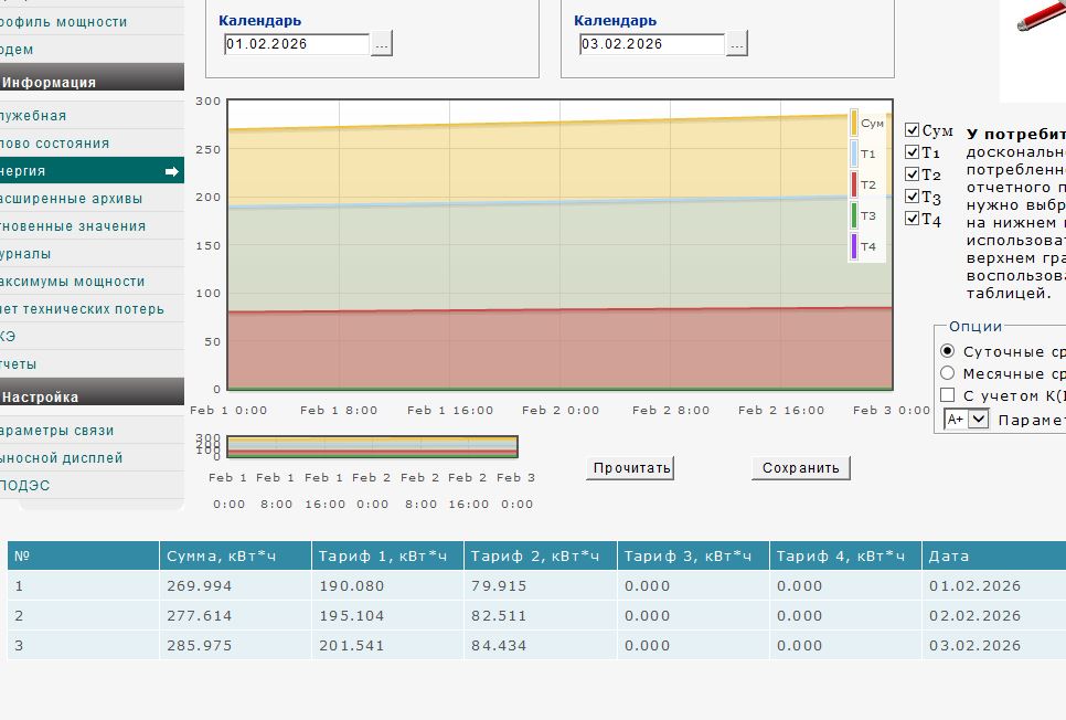 Меркурий 234 выставлен на 1 тариф, но программа формирует отчет по 2 тарифам? Тарифное расписание не выбрано никакое.