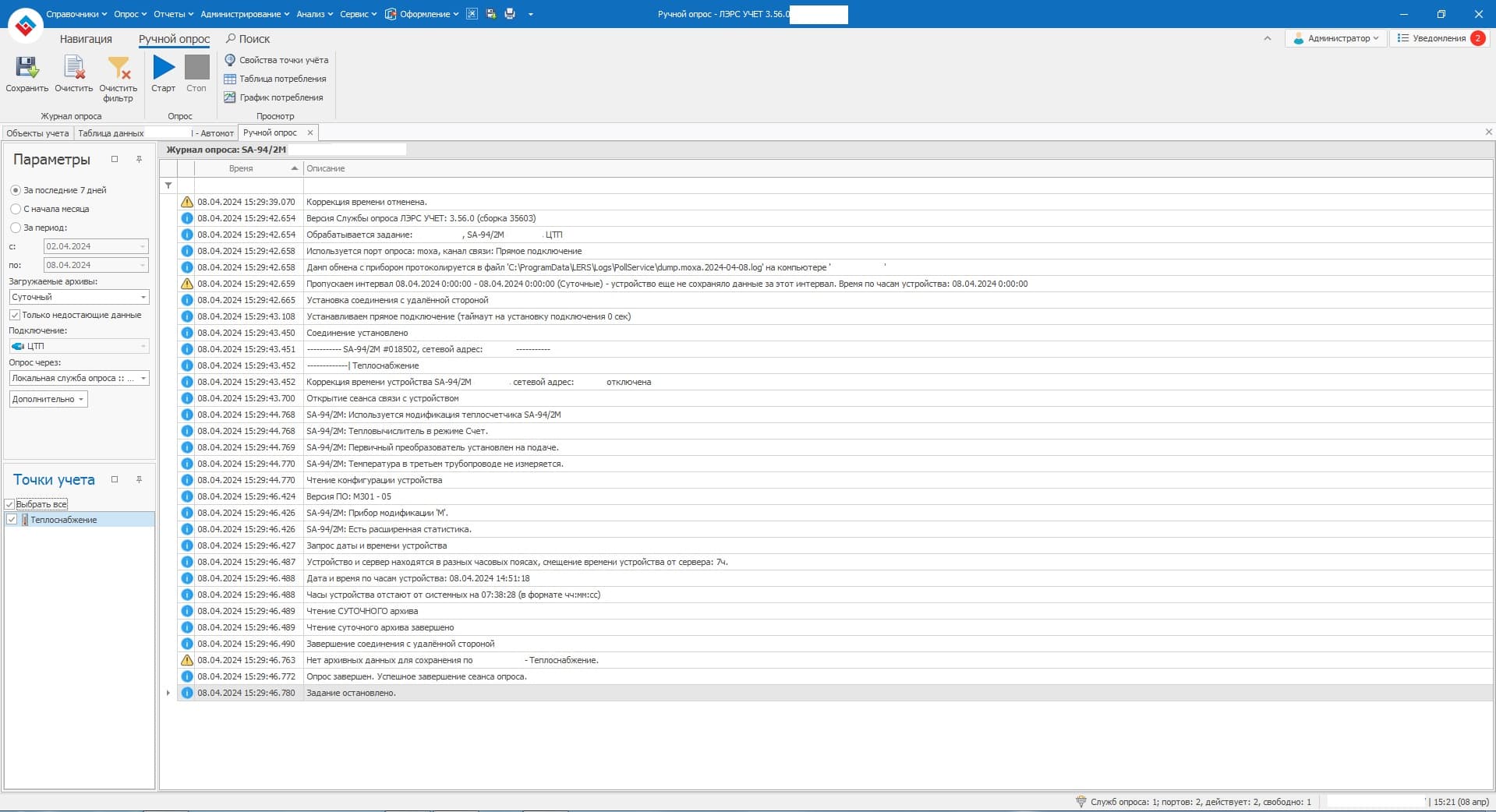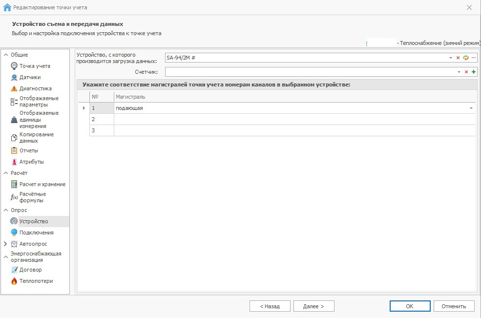Необходим скриншот таблицы с данными точки учета, а не объекта, так как на скриншоте таблицы объекта не видно реквизиты прибора учета, который вы опрашиваете.