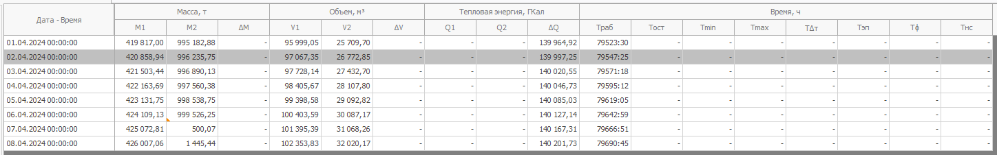 Данные по Траб у вас все таки появились. До сих пор не понятно о каком приборе идет речь. Покажите полный скриншот окна Рабочего места оператора с открытой таблице с данными точки учета, в которой открыты рассматриваемые данные. Подчеркиваю, должен быть полный скриншот Рабочего места оператора с открытой таблице с данным именно точки учета. Не нужно обрезать скриншот! Таблица с данными объекта учета не подходит!