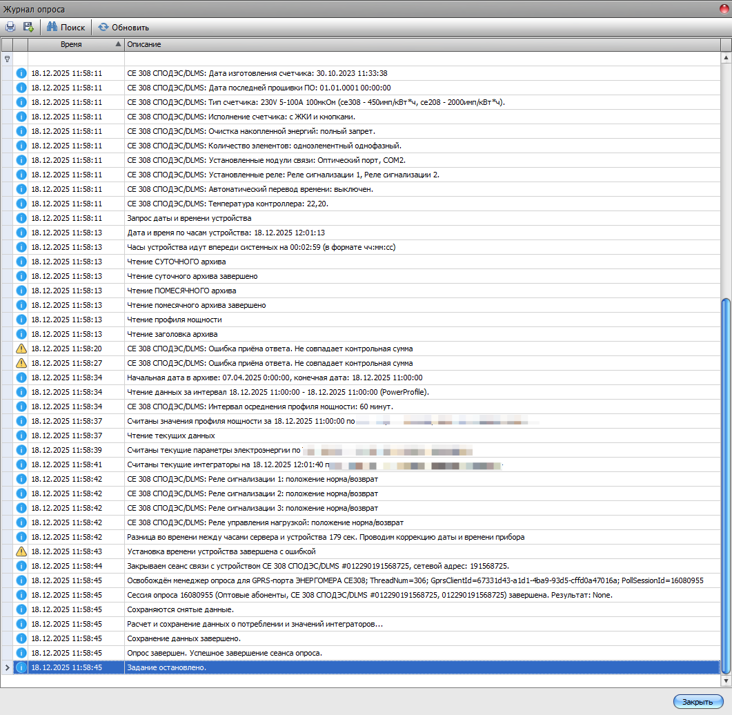 Также уточните есть ли другие точки учета с приборами других моделей, по которым считываются текущие параметры электроэнергии, но при этом они не отображаются в параметрах качества?