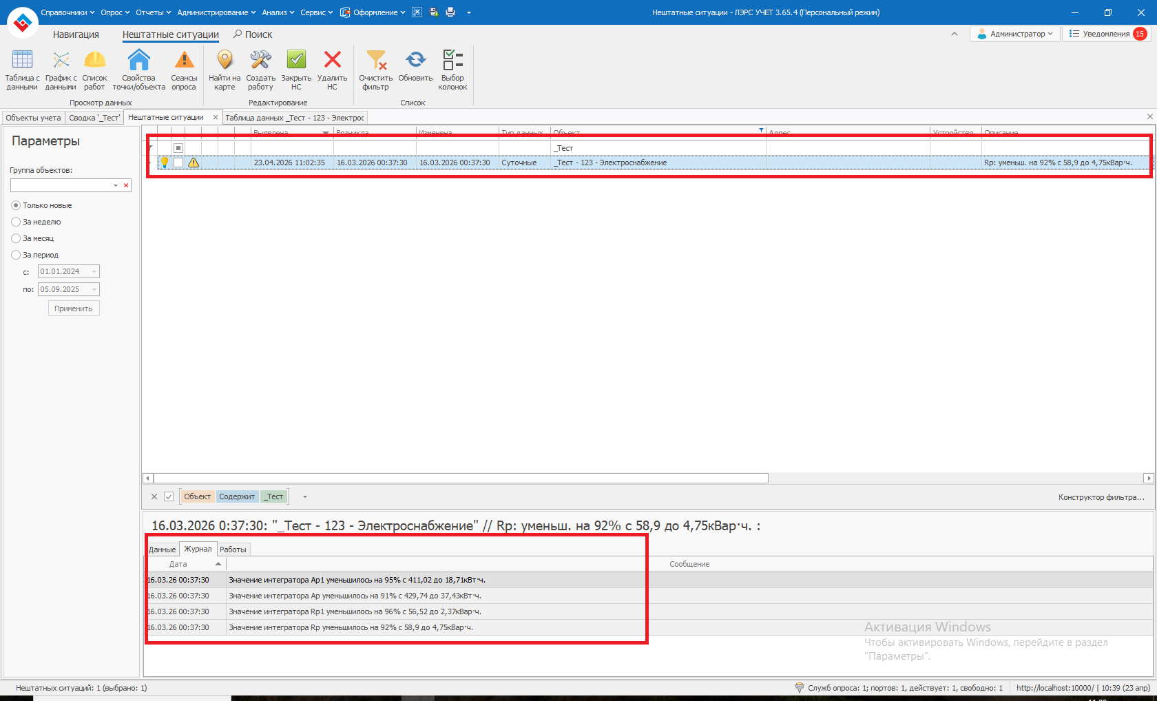 Проверил работу диагностики в версии 3.65.4. Проблем не наблюдается, система создаёт НС при сбросе интеграторов.