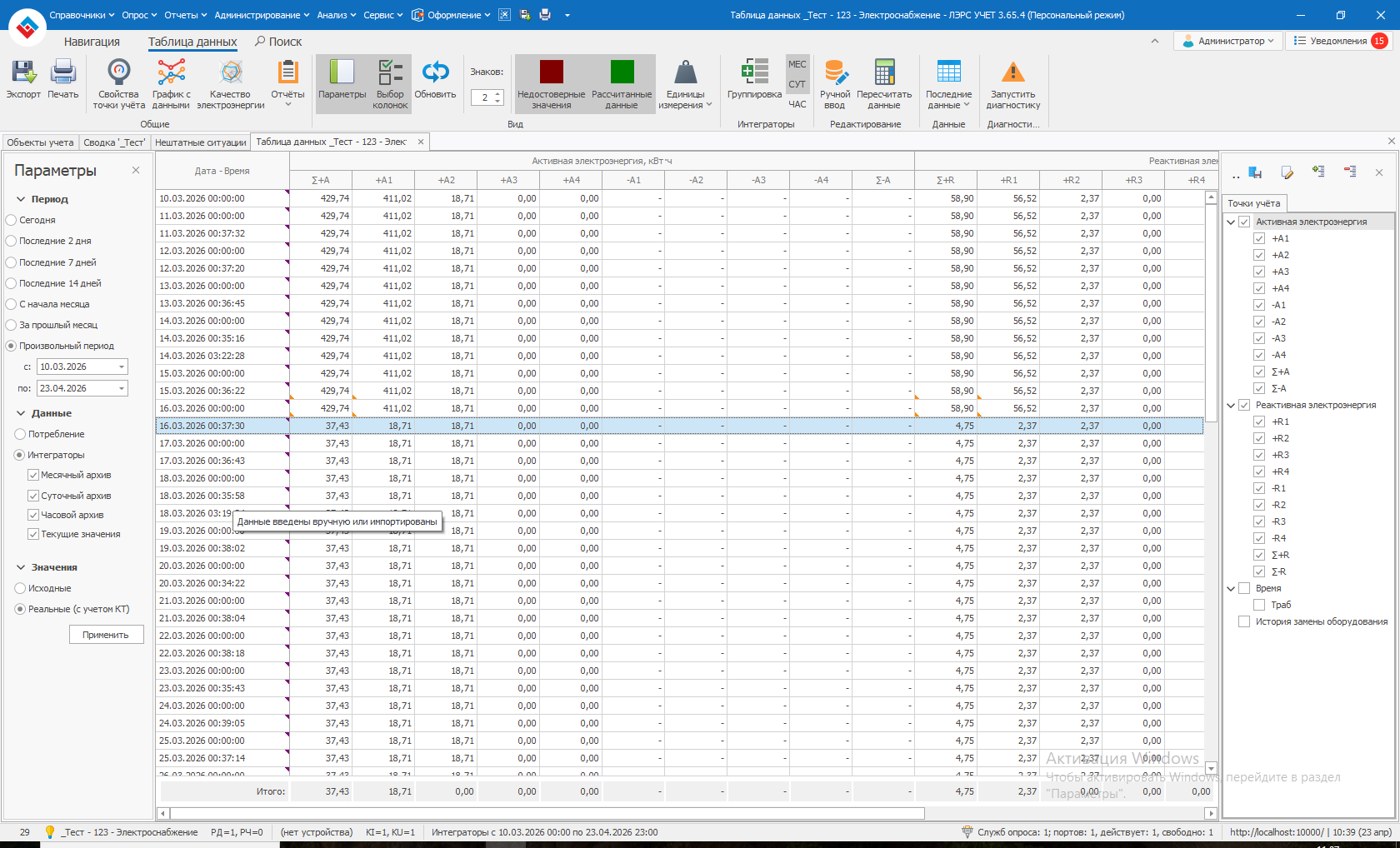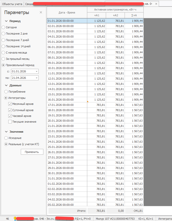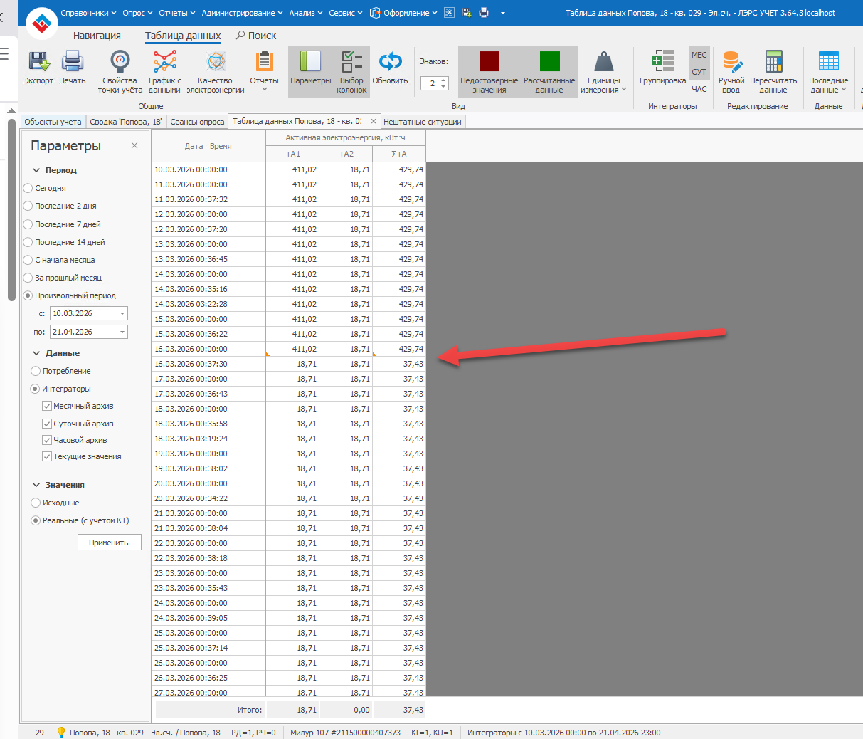Создал точку учёта с параметрами, как у вас на скриншоте: