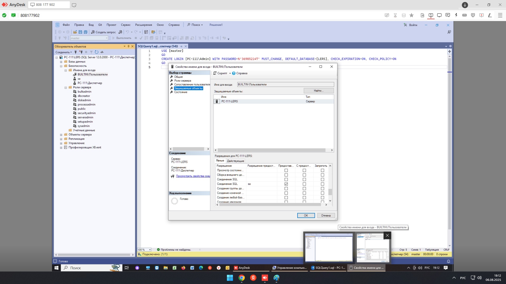 Служба сервера не может подключиться к базе данных. Проверьте, что у вас есть база данных. Проверьте, есть ли у учётной записи доступ к базе данных.