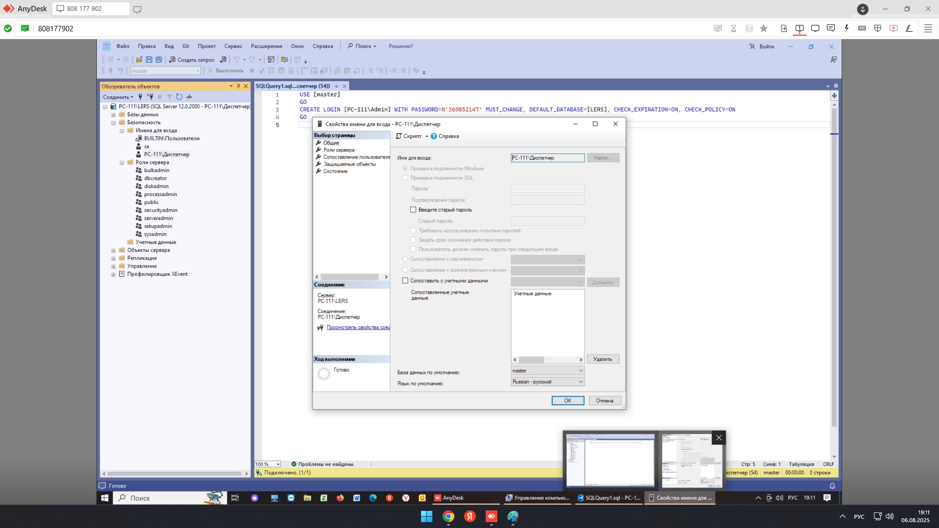 В 2025-04-23 17:43:08 служба сервера не может подключиться к SQL Server, поскольку служба SQL Server не запущена.