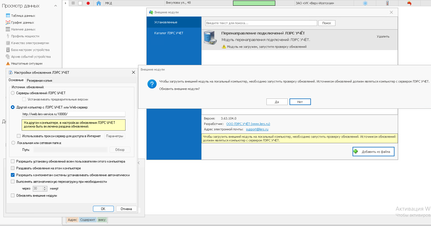 При добавлении не возникает проблем. Добавлаем файл, ЛЭРС просит обновить, находит обновление модулей, обновляем.