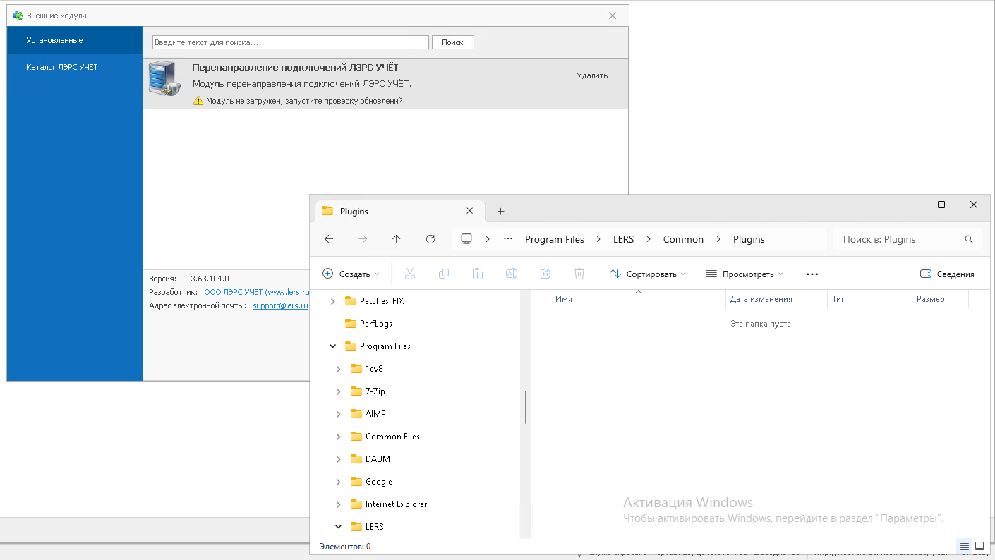 Непонял это часть. Я удалил файл, который сам туда положил. И снова скопировал в C:\Program Files\LERS\Common\Plugins модуль, коорый скачал с вашего сайта (это тот же самый файл).