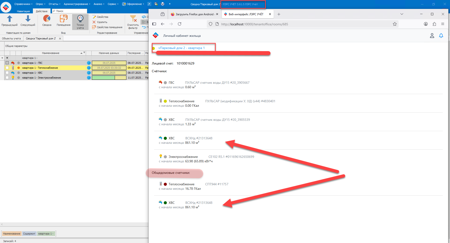 Более того, общедомовой счетчик воды почему-то упомянут дважды (указал стрелками на скриншоте).