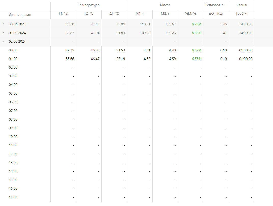 Для просмотра последних имеющихся данных перейдите в таблицу потребления и нажмите кнопку (Последние данные) на панели инструментов.