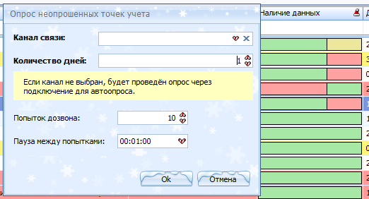 Если не опрошены предыдущие сутки и в настройках количество дней стоит 1 то всплывает сообщение что "нет точек учета, поставленных на принудительный опрос… "