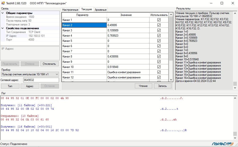 Аналогично подключены и другие счётчики но они опрашиваются и работают нормально. В программе testall определяются как 16 канальные и по факту тоже 16 канальные