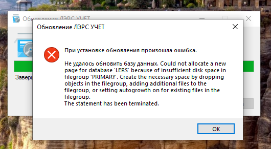 на диске с базой закончилось свободное место