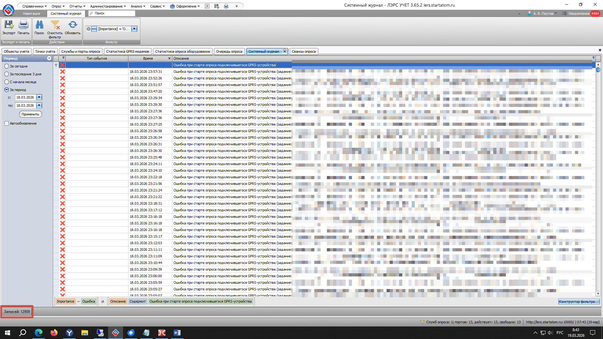 Сеансы опроса приборов зависли. Таких сотни.
