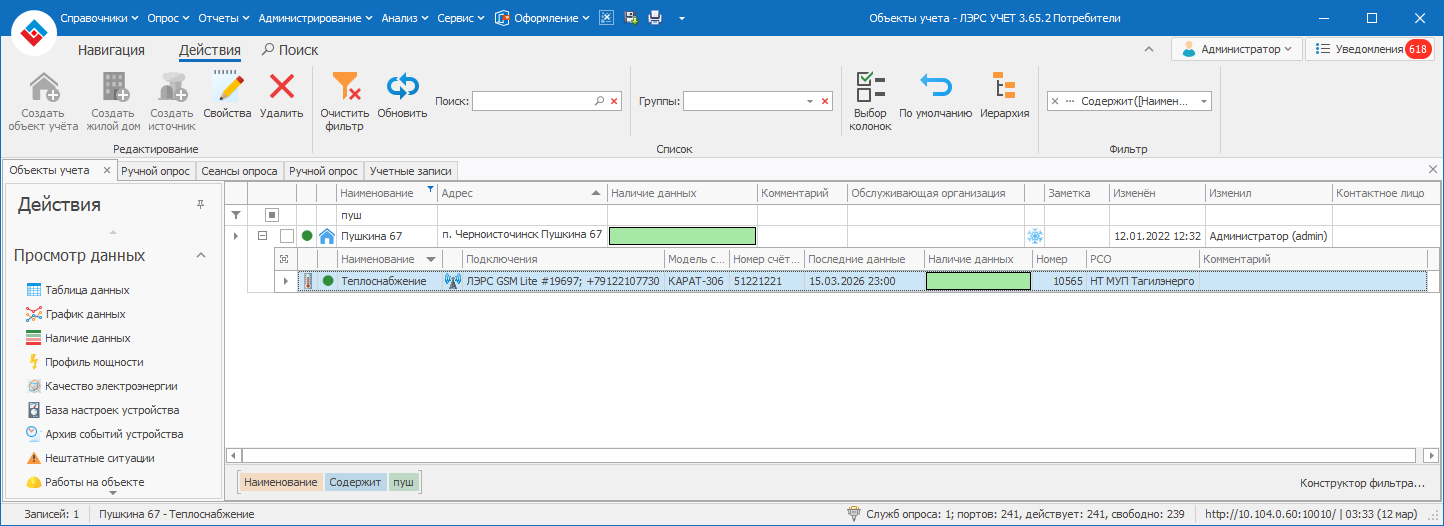 Вот точка учёта с номером 10565 на первом сервере ЛЭРС: