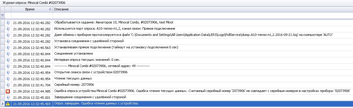 Ладно, нам же важно проверить читает данные или нет. Исправил номер в ЛЭРС на неправильный 2073906. Опрос заработал: