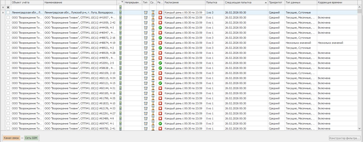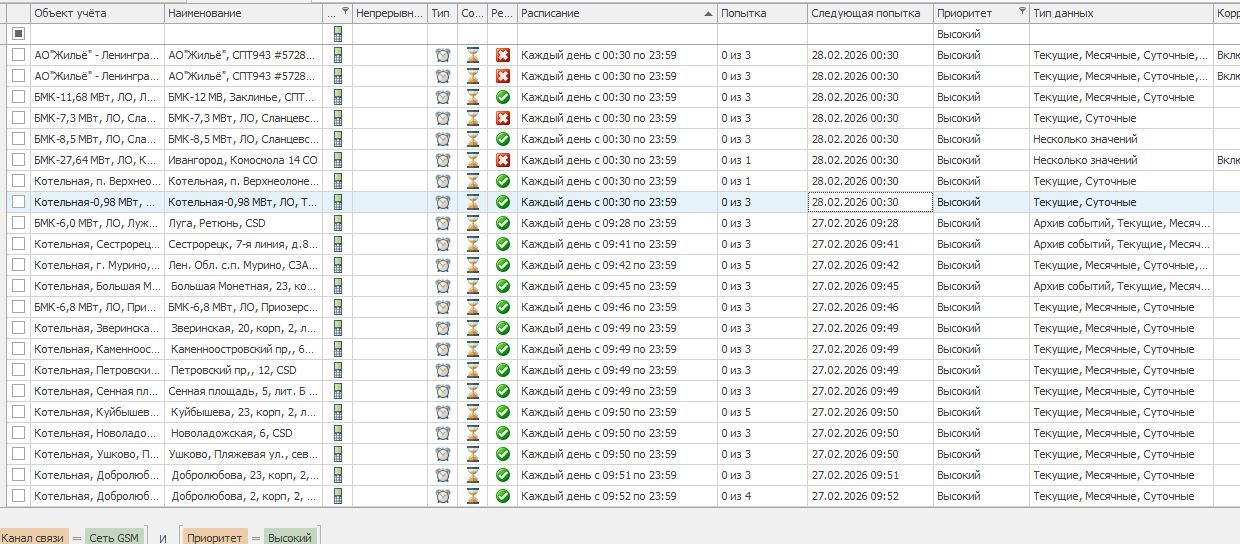 Здравствуйте. По другим каналам связи расписание примерно такое же, есть задания, которые выполняются раньше, есть которые позже. У заданий, которые выполняются по сети интернет такая же ситуация, как у csd. Задания по gprs выполняются вовремя