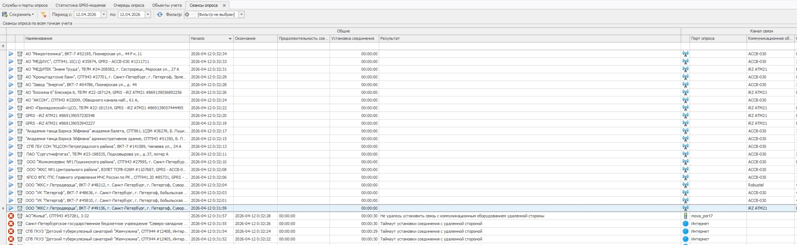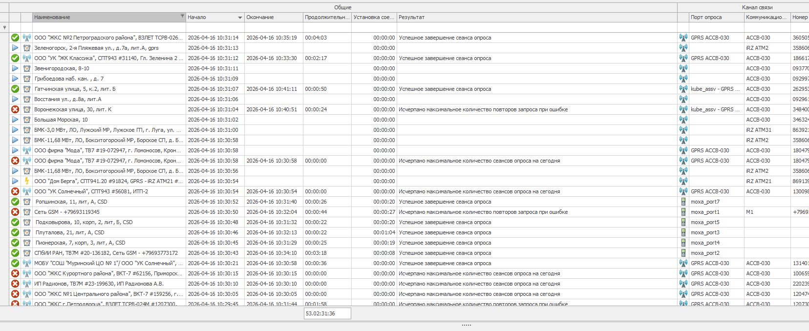 Как писал ранее, в 10:30 у нас на несколько минут приостанавливается опрос по csd, отключил к этому времени службу GPRS USR-GPRS232-730, но результат всё тот же