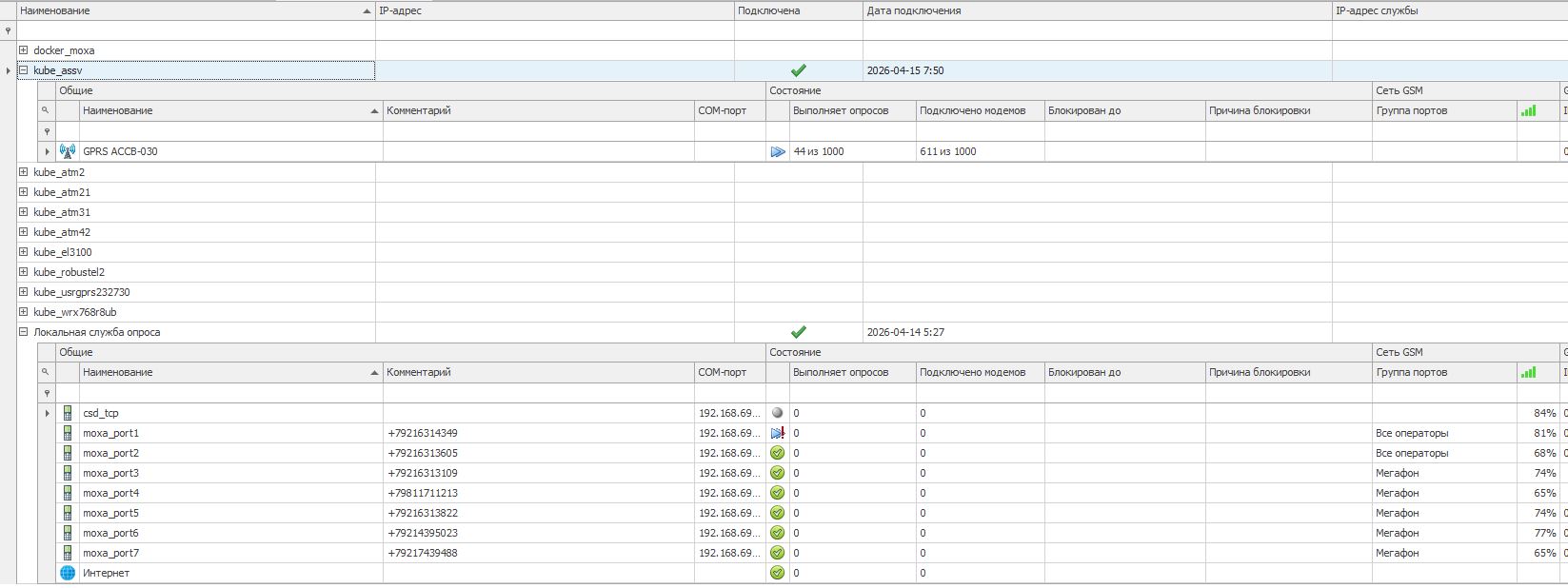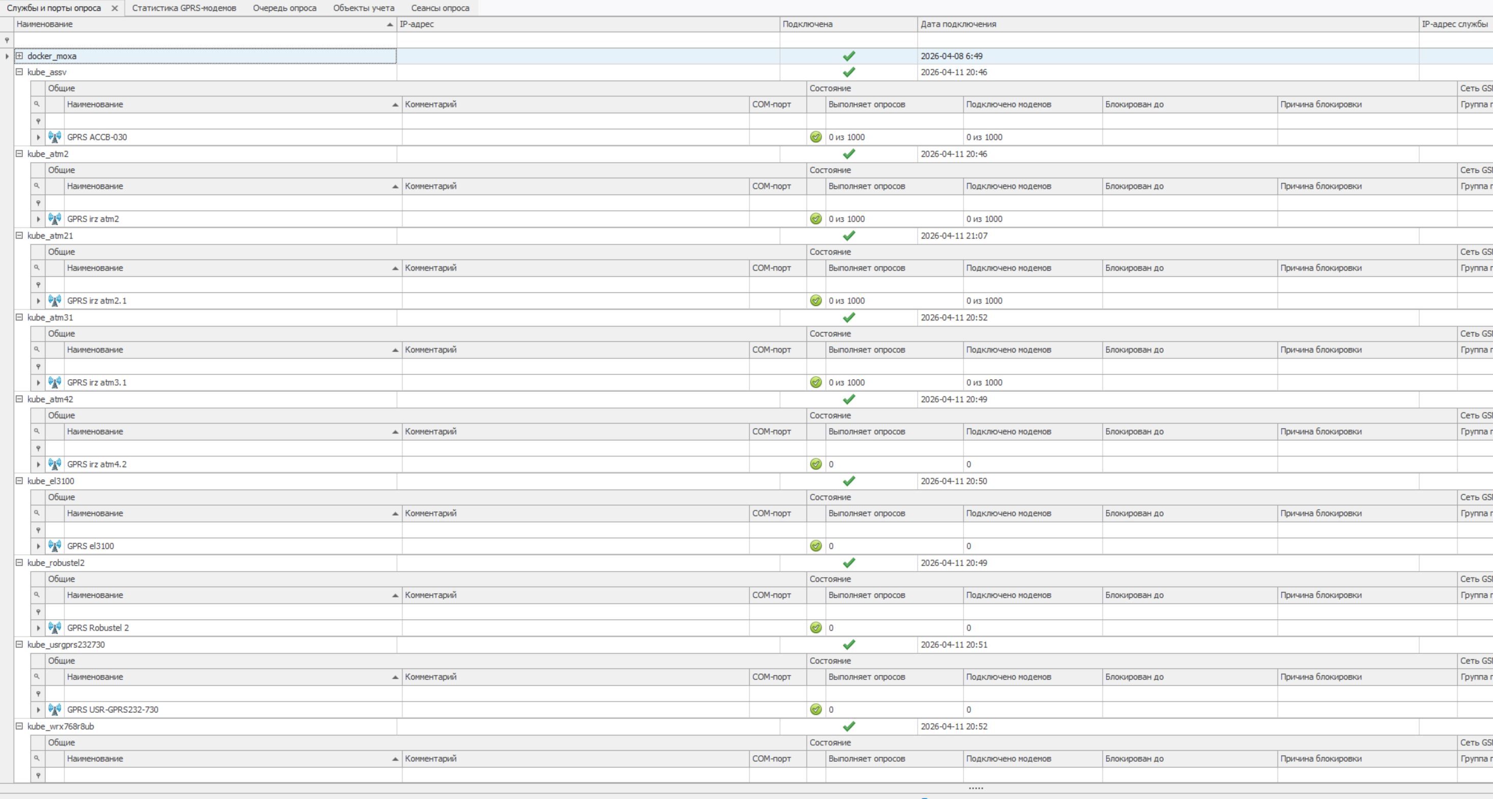 На сколько я понимаю, на каждой такой Службе опроса заведен только один порт опроса GPRS для модели модема, фигурирующей в наименовании Службы.